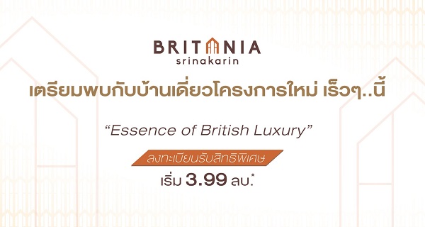 | จุดเด่นของโครงการ | “Britania ศรีนครินทร์” บ้านเดี่ยวโครงการใหม่ “Essence of British Luxury” เริ่ม 3.99 ล้านบาท* |