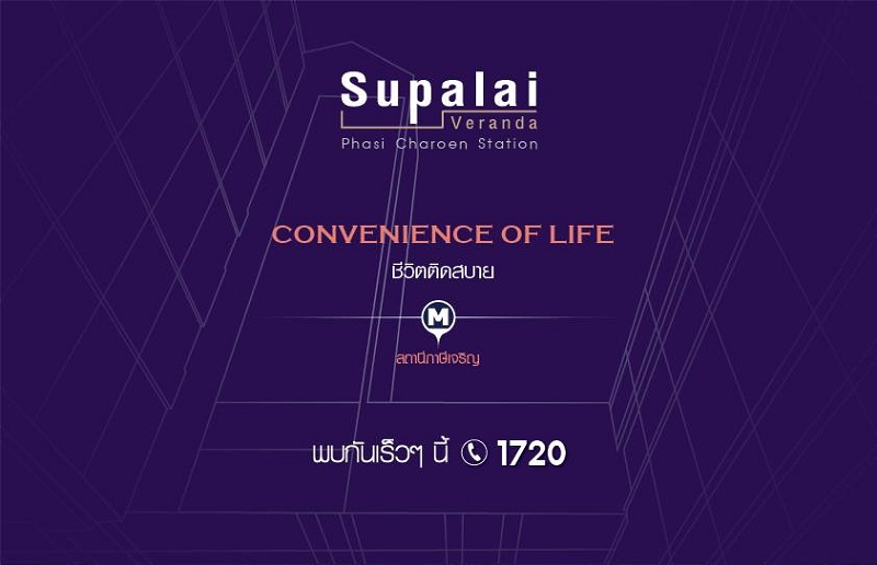บมจ.ศุภาลัย เตรียมเปิดตัวโครงการ “Supalai Veranda สถานีภาษีเจริญ“ คอนโดใหม่ ที่จะทำให้คุณใช้ชีวิตสบายๆ บนทำเลศักภาพโซนเพชรเกษม ติดถนนใหญ่ เพียง 150 เมตร จากรถไฟฟ้า MRT ภาษีเจริญ พบกันเร็วๆ นี้